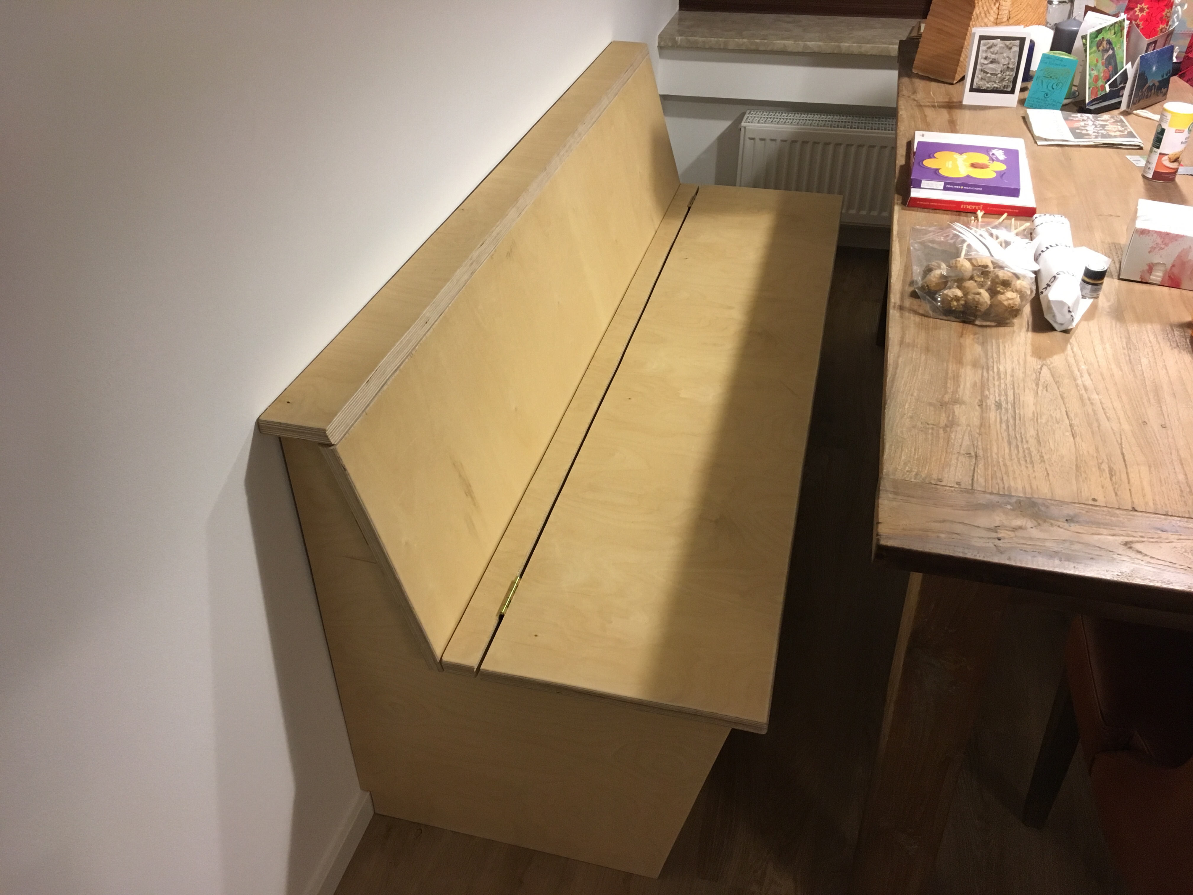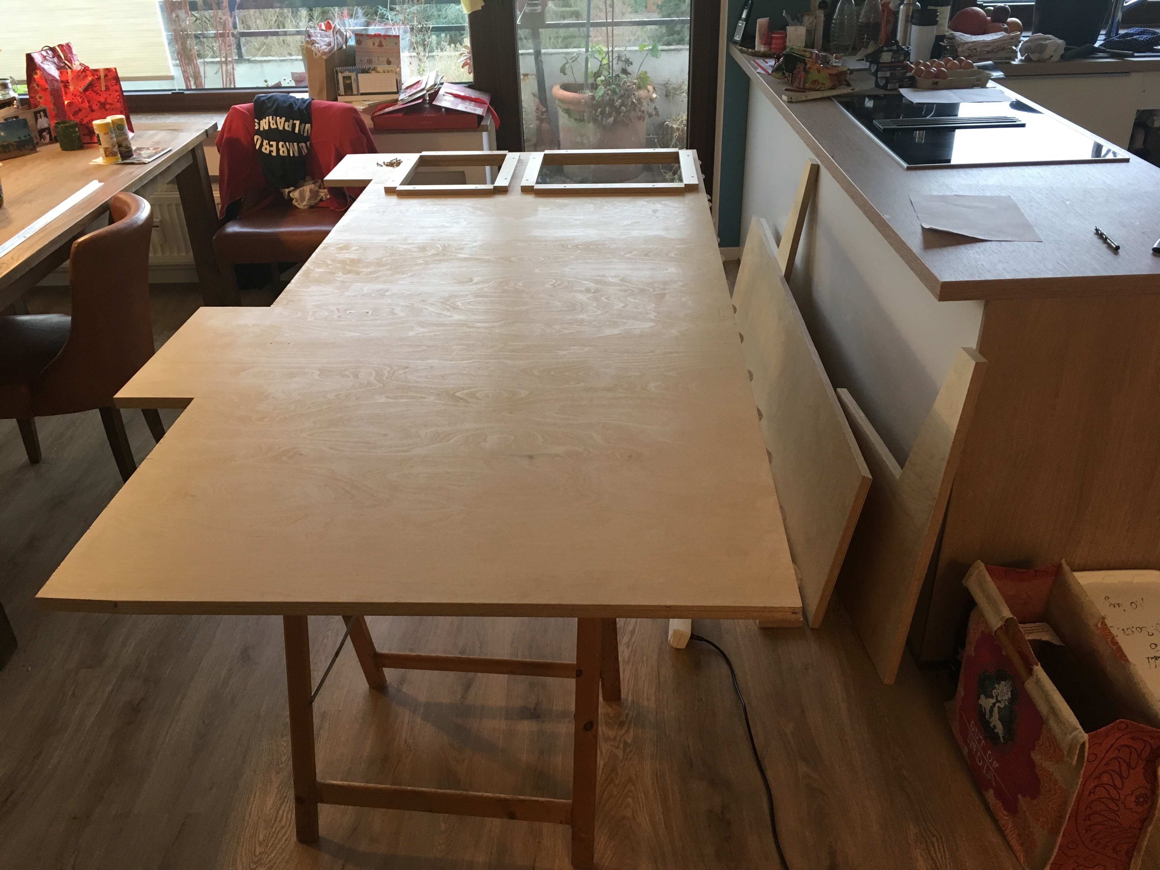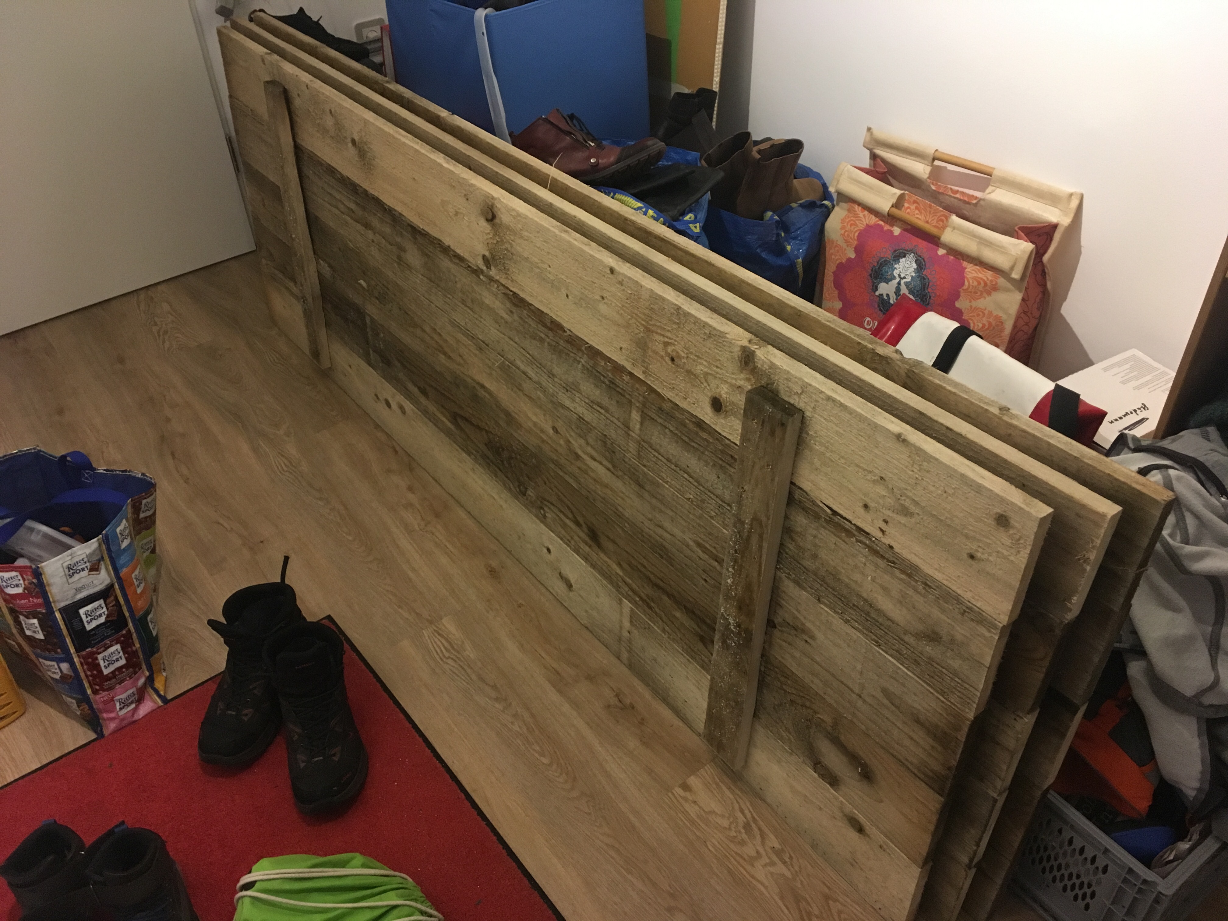 Bausatz für Große… Das ehemalige Podest aus Jakobs Zimmer wird in eine neue Form gebracht. Jetzt noch schnell zum Baumarkt, dann folgt der Probeaufbau.