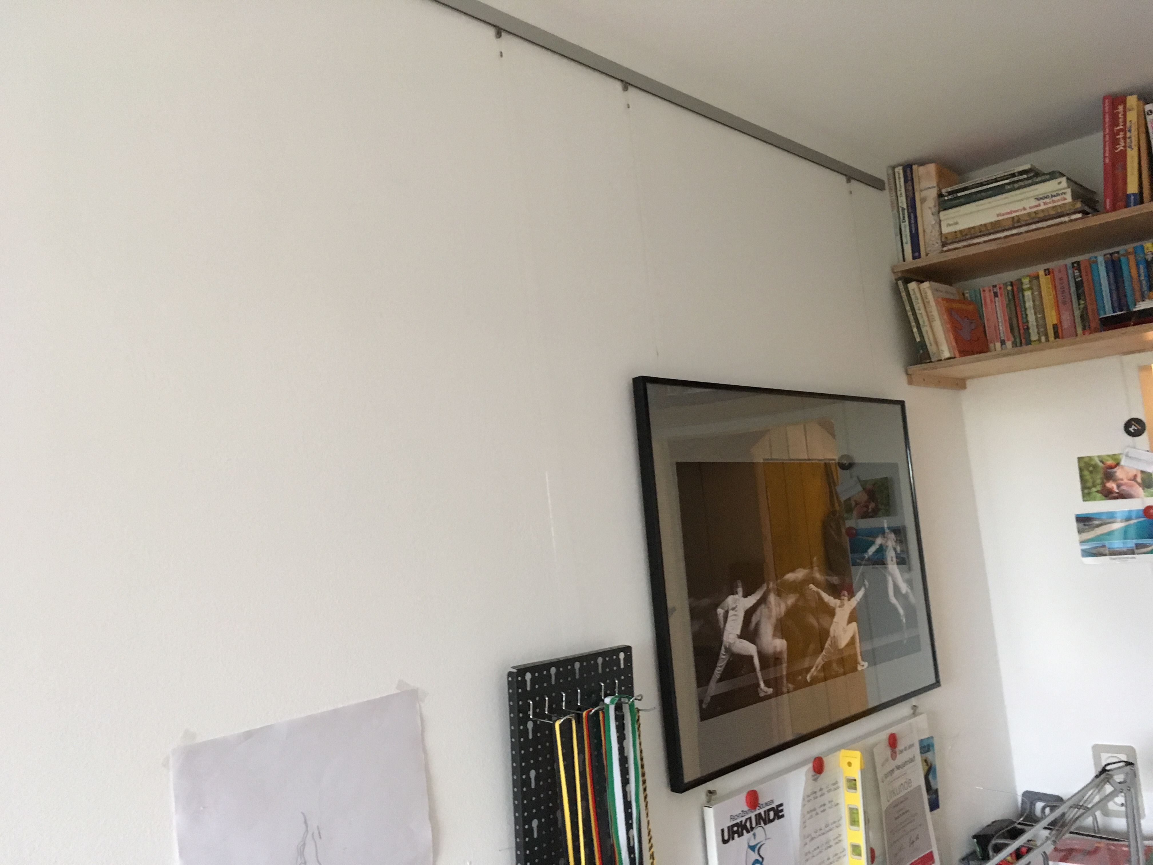 Die ersten Galerieschienen sind in den Kinderzimmern wieder an der Wand und werden in den nächsten Tagen mit Bildern bestückt.